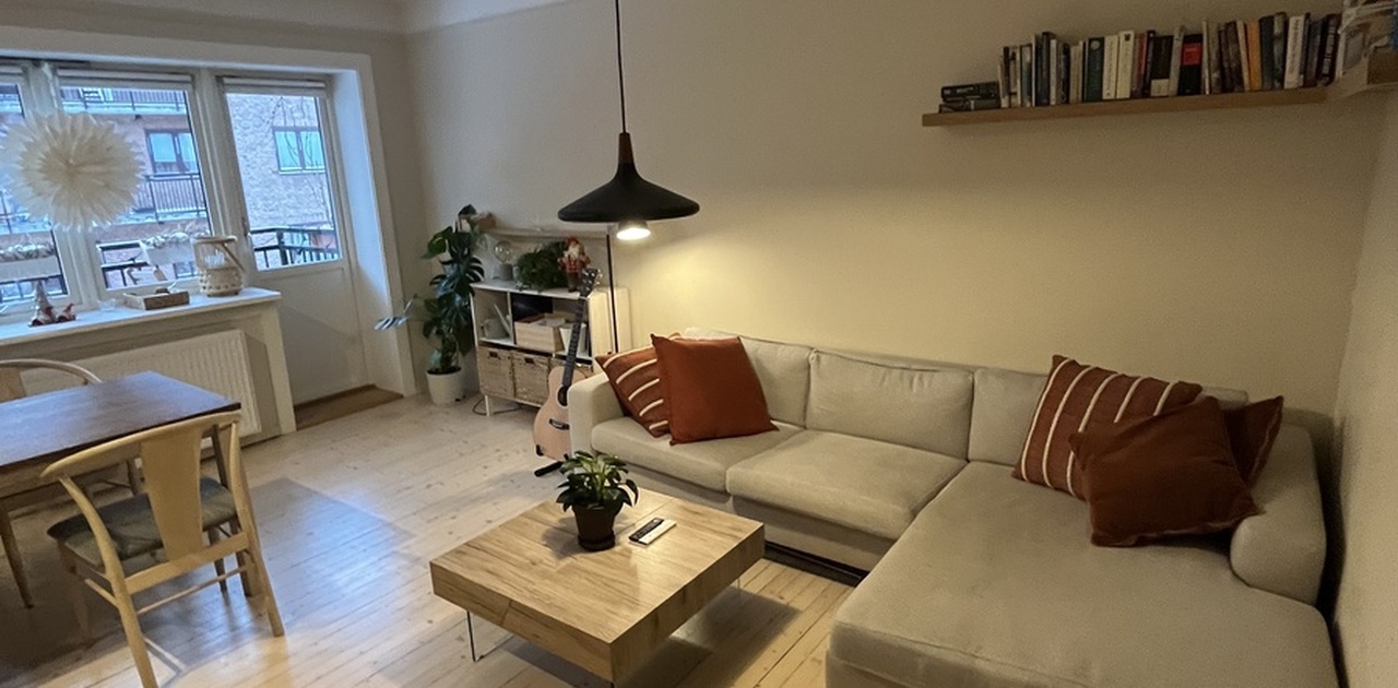 Lys og koselig 2-roms leilighet i 3.etg sentralt på Sagene. Leiligheten leies ut fullt møblert. Leiligheten består av stue, separat kjøkken, ett soverom, en innvendig bod, bad, entre og solrik balkong. Soverom vender mot indre gårdsrom, skjermet fra trafikk og støy. Leiligheten har nyoppusset kjøkken fra 2023, soverom og stue fra 2024. Leiligheten har også en effektiv planløsning. Fyring (a-konto), varmtvann (a-konto), strøm og nett inkludert. Ingen dyr eller røykere tillatt.