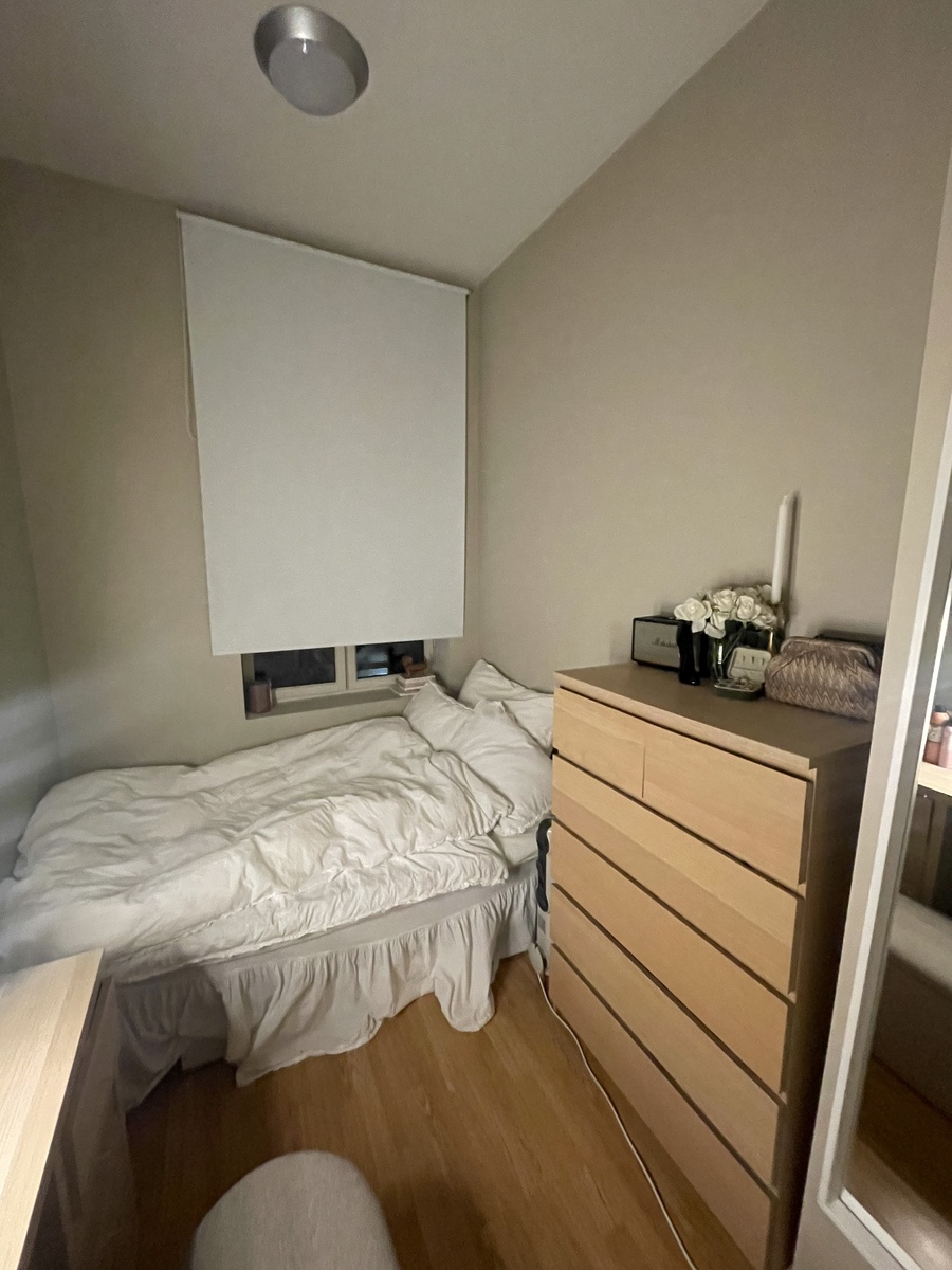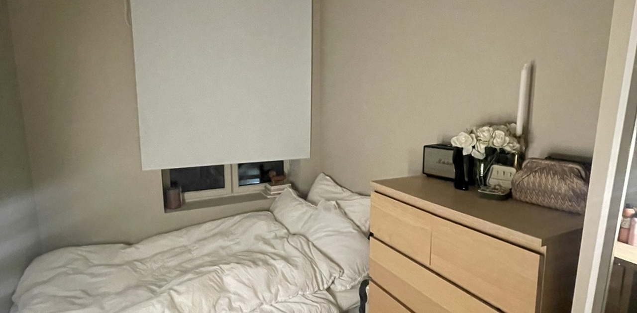 Selve rommet er på 9kvm. Rommet er lyst og har plass til det man trenger. om man ønsker kan man få med kommoden som står der og sengen for 1000kr ekstra ❤️