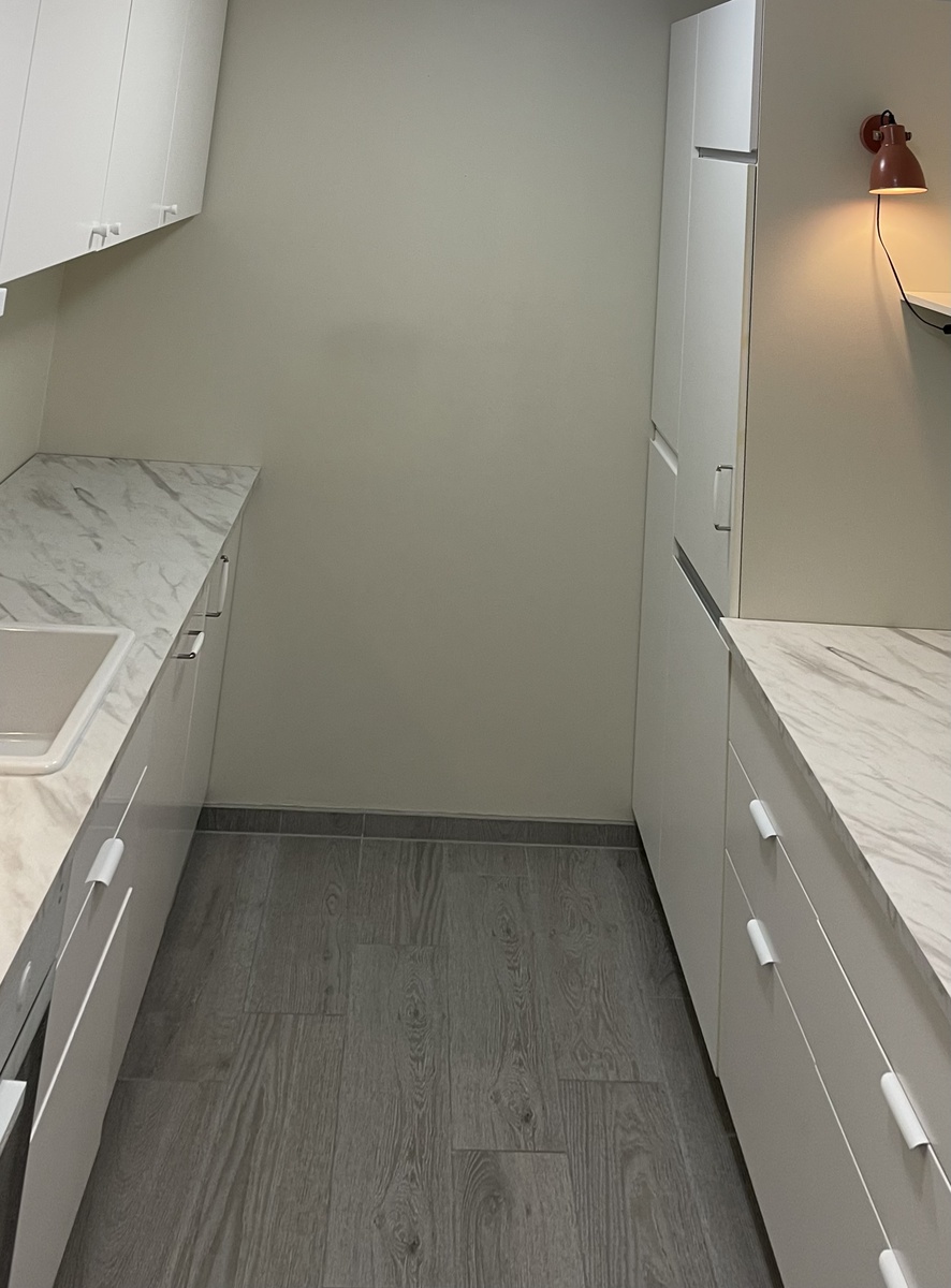 Leiligheten kommer umøblert, men inkluderer alt av hvitevarer samt garderobeskap og en 150-seng (om ønskelig).