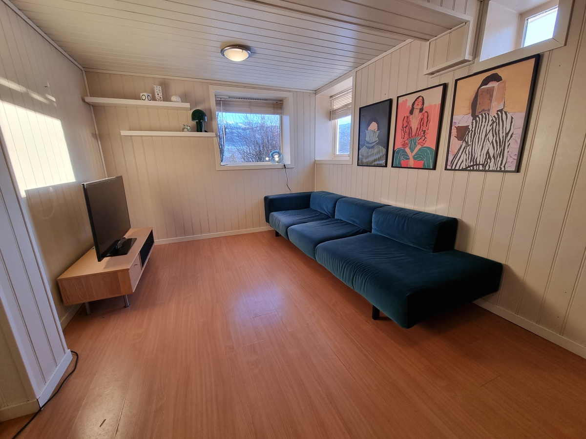 Leiligheten er så godt som fullt møblert med hvitevarer og inneholder et lyst oppholdsrom med store vinduer, et soverom med plass for dobbeltseng, og et flislagt ny bad med gulv varme. Det er også et «eget» vaskerom med vaskemaskin og tørketrommel.