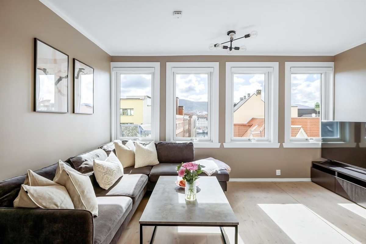 Lys og innbydende sentrumsleilighet med heis og utsikt!