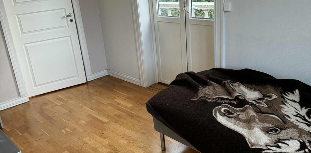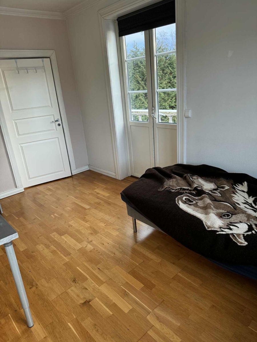 Rommet er på 12 kvm og kan leies ut delvis møblert om ønskelig (seng, pult, klesskap). Rommet leder også ut til en stor balkong hvor vi nyter sola om sommeren og til tider inviterer til sosiale lag.