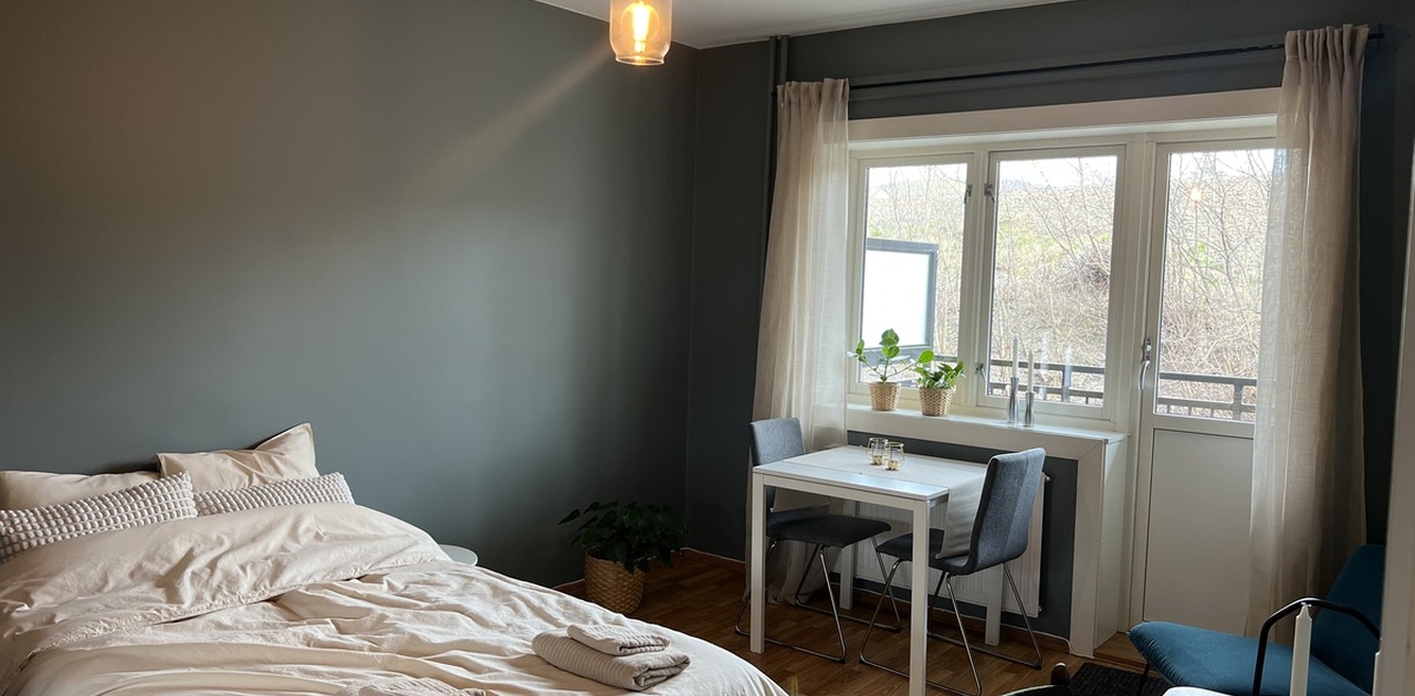 Stort rom på over 15 kvm med balkong og alt man trenger leies ut!