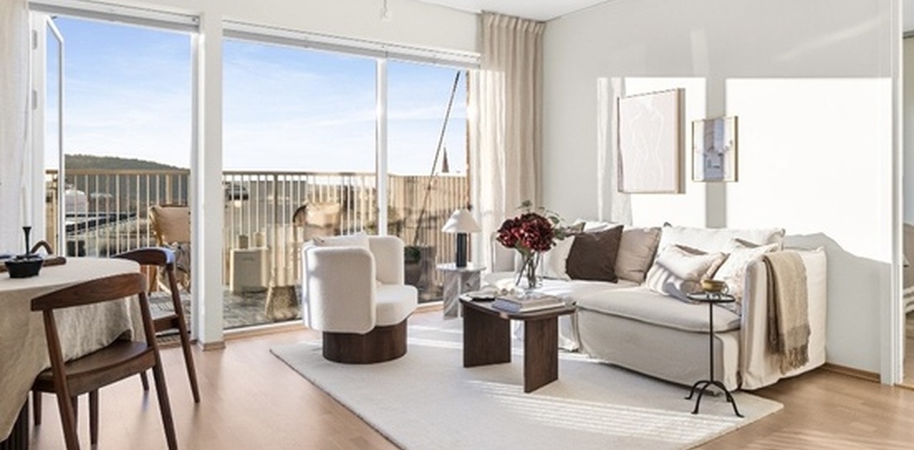 Lekker 2-roms toppleilighet fra 2019! Spektakulær utsikt. Solrik balkong. Heis. Felles takterrasse. Mulighet for garasje