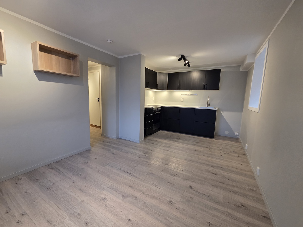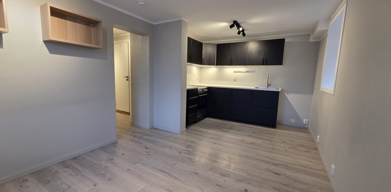 Lys og innbydende 2-roms leilighet i Jacob Larsens vei 15. Boligen ble omfattende oppusset i 2021/2022 med nytt bad, nytt kjøkken og oppgraderte overflater, noe som gir et moderne og innflyttingsklart preg. Planløsningen er effektiv og består av entré, stue med åpen kjøkkenløsning, soverom og bad. I tillegg følger en praktisk utvendig bod på ca. 3 kvm.