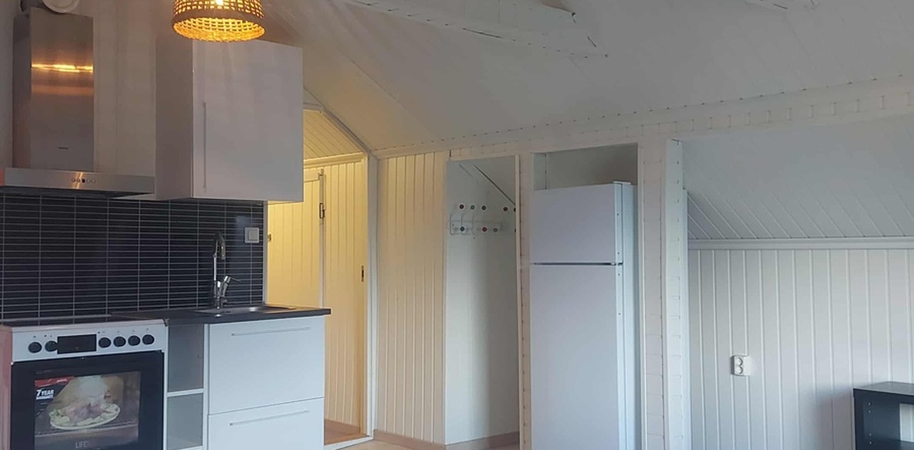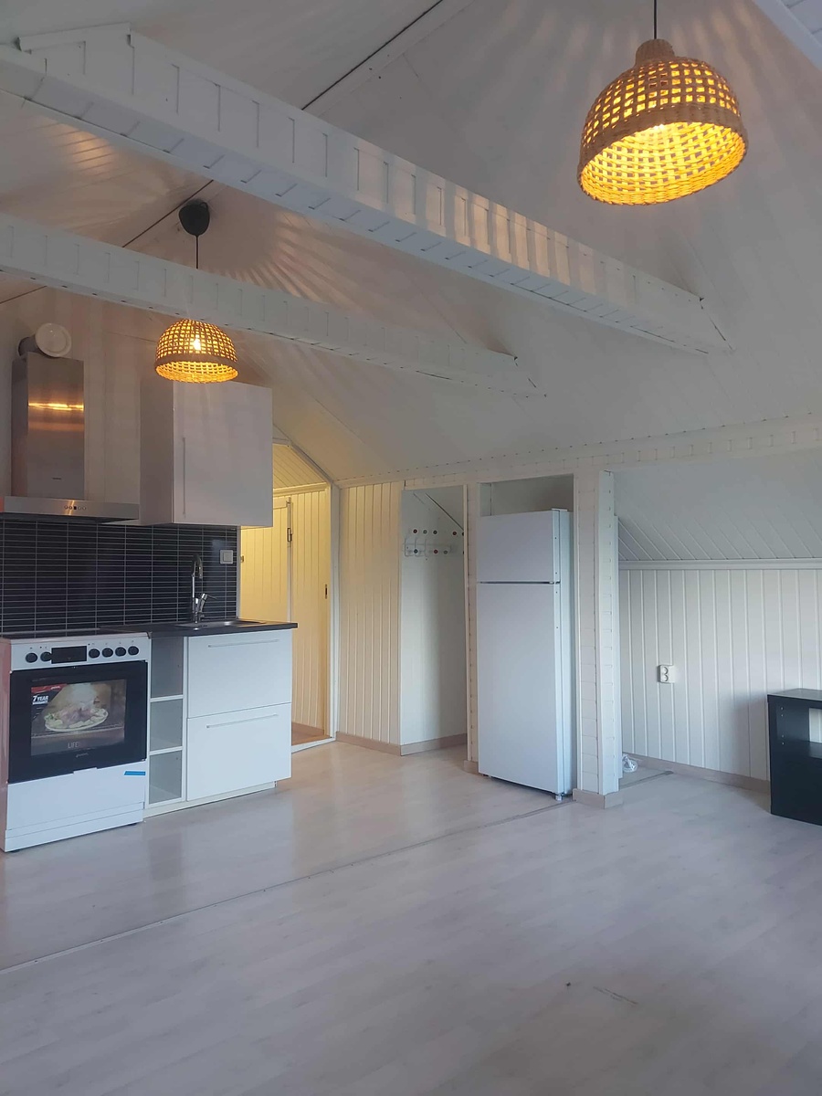 - Kjøkken utstyrt med nytt kjøl/fryseskap, nytt komfyr og oppvaskmaskin.
