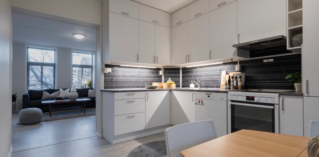 Leiligheten eies av Sit og leien justeres 1. august hvert år. Innad i kollektivet har vi tilpasset leieprisen noe etter romstørrelse og frem til 01.08.26 ligger den på ca 6200 for det minste rommet og ca 6700 for det største. Strøm er ikke inkludert i leien.
