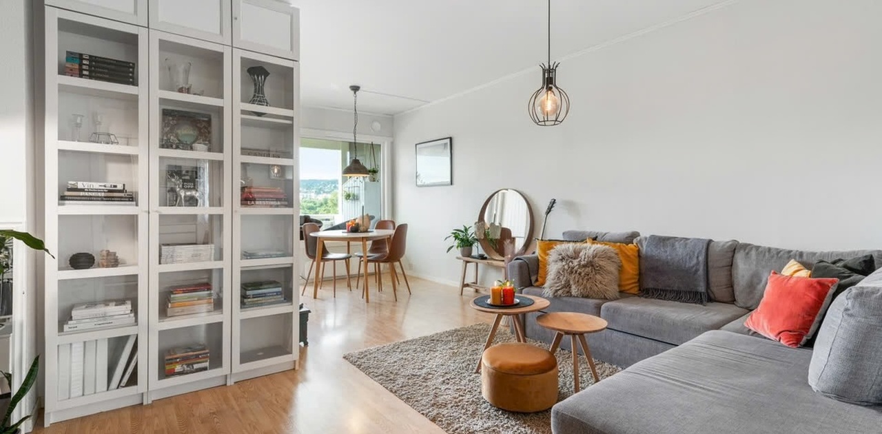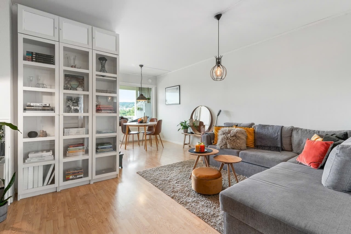 En pen 3-roms leilighet i andre etasje. Leiligheten har en arealeffektiv planløsning og inneholder: entré, gang, bad, stue med utgang til veranda, kjøkken og 2 soverom. I tillegg disponerer boligen kjellerbod. Leies ut delvis møblert, men ikke med samme møbler som på bildene (dette kan diskuteres ut ifra leietakers behov)