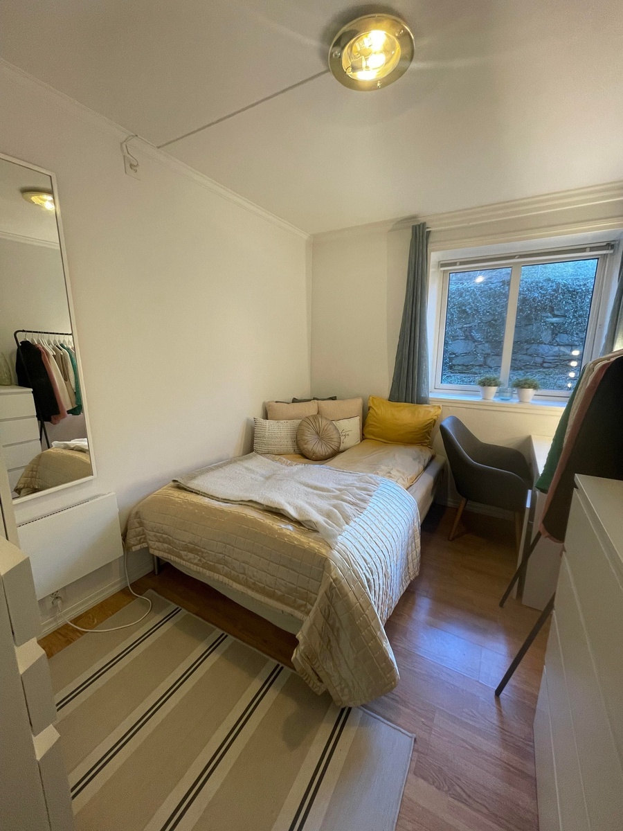 Ett rom i hyggelig kollektiv ledig fra 1. april. Leiligheten er på 87 kvadratmeter, og består av fire soverom, kjøkken, stue, ett bad, og en romslig bod. Rommet som leies ut er rundt 8-9 kvadratmeter, og inkluderer et stort klesskap. Seng kan kjøpes hvis man ønsker, blir enig om evt pris☺️. Beliggenheten er svært sentral – bare noen minutter unna det meste. Våre nærmeste naboer er Dragefjellet (Det juridiske fakultet) og Sydneshaugen skole (Det humanistiske fakultet), og det er bare 5 minutters gange til nærmeste matbutikk. Leiligheten ble pusset opp i 2016 og er lys og romslig, med store vinduer.