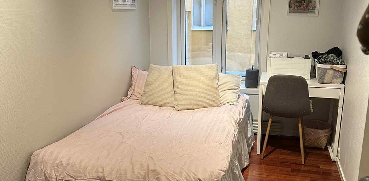 Leiligheten er møblert, soverommet har inkludert klesskap, og seng og speil kan eventuelt følge med!