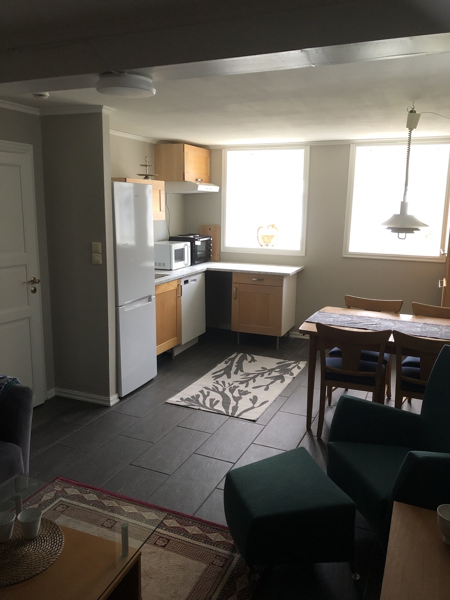 Nyrenovert hybelleilighet m sovealkove, stor bad m badekar og dusj. Kjøkkenkrok m hybelkomfyr og mikrobølgeovn.Plass til to i sovealkoven( par). Leiligheten ligger i husets kjeller, men har store vinduer ut mot hage.