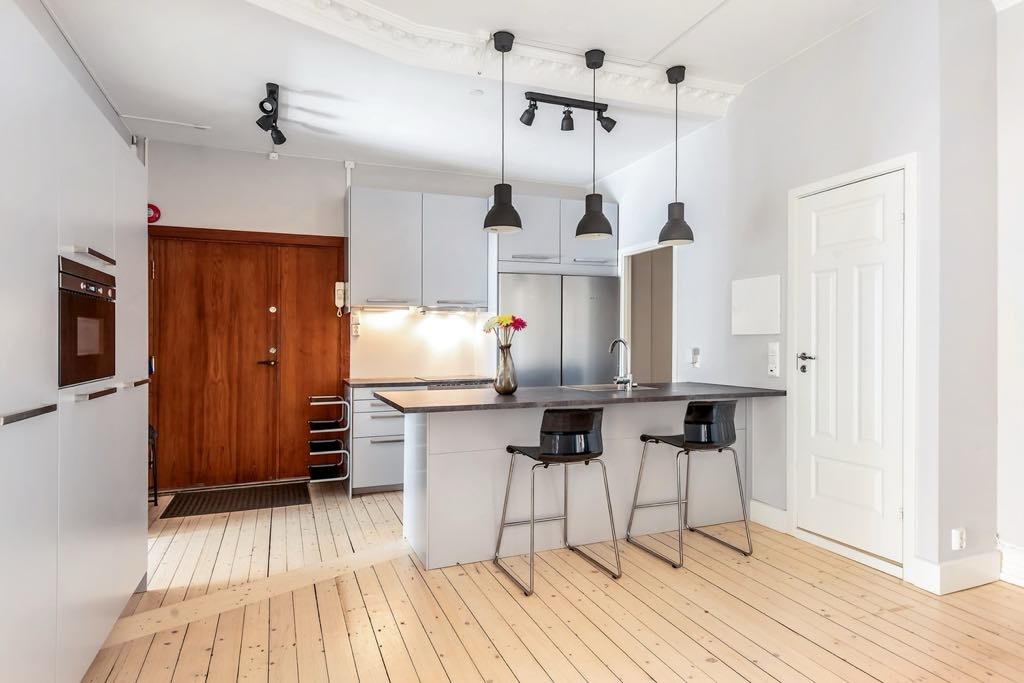 Litt om leiligheten: Nyslipte orginale heltre furugulv. Stukkatur. Leiligheten ligger i en høy 1. etg. i rolig gate. Ca 100 meter fra Bogstadveien på Majorstua. Takhøyde på > 3 meter. Fllislagt bad med innbygd toalett, vaskemaskin, tørketrommel, downlights. Nytt åpent kjøkken med sitteplasser rundt halvøy. Godt med skapplass på kjøkken - utrustet med det mest nødvendige av kjøkkenutstyr for matlaging og for å kunne innta det gode måltid. Nye hvitevarer: Oppvaskmaskin, vaskemaskin, kjøleskap, fryseskap, platetopp, stekovn, mikrobølgeovn. Den åpne stue og kjøkken løsningen er på ca 35kvm og har også gigantisk komfortabel hjørnesofa, bord, teppe m.m. + 50" 4K HDtv. 70Mbps trådløst bredbånd.