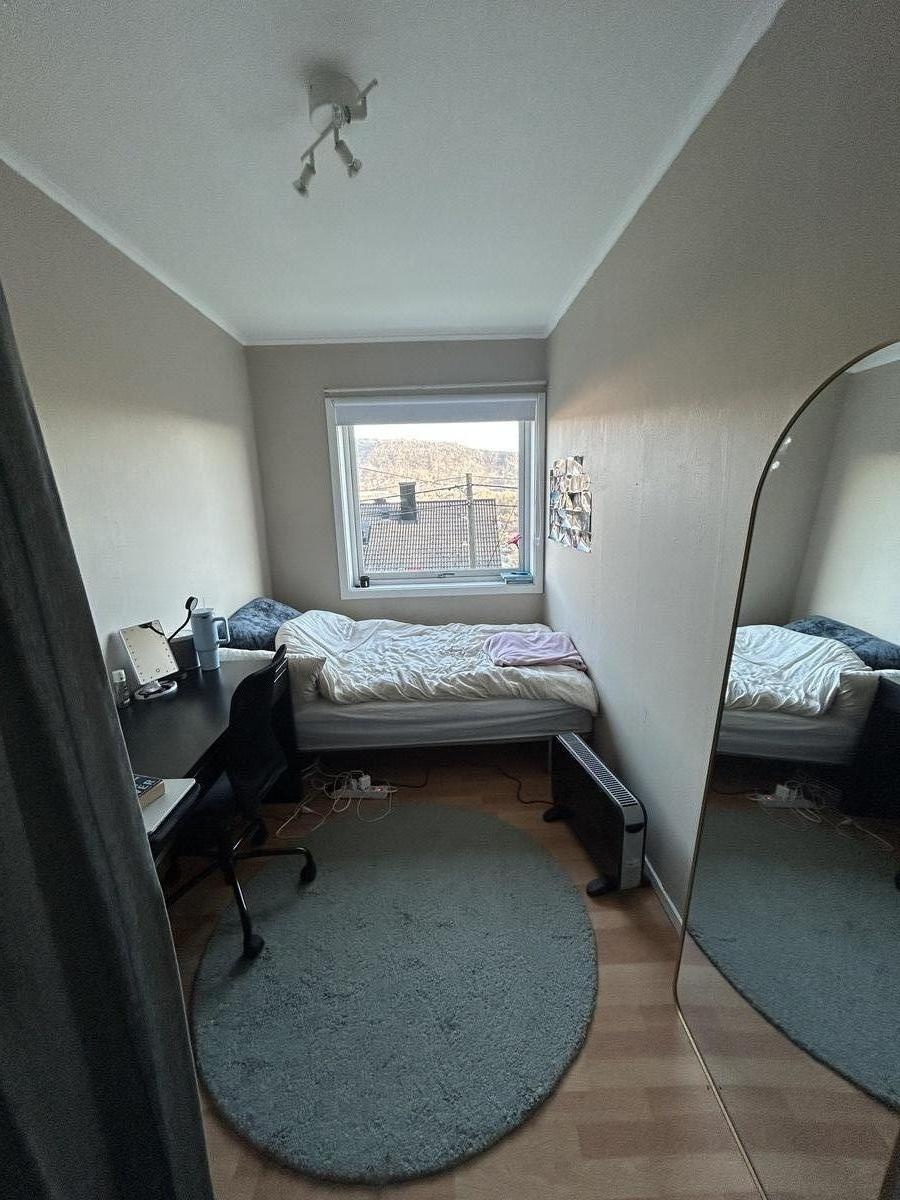 Hei! Jeg framleier rommet mitt fra 01.04.26 - 31.07.26, med eventuell mulighet for forlengelse. Månedsleie er på 7000 kr. Leiligheten ligger i et rolig, familievennlig område med gode turmuligheter. Du vil bo sammen med to hyggelige, sosiale jenter på 22 år og 24 år. Rommet er 8 kvm, med et stort vindu og fin utsikt. Med rommet følger det med en 120 seng og en pult om ønskelig. Det er også stor stue og balkong i leiligheten.