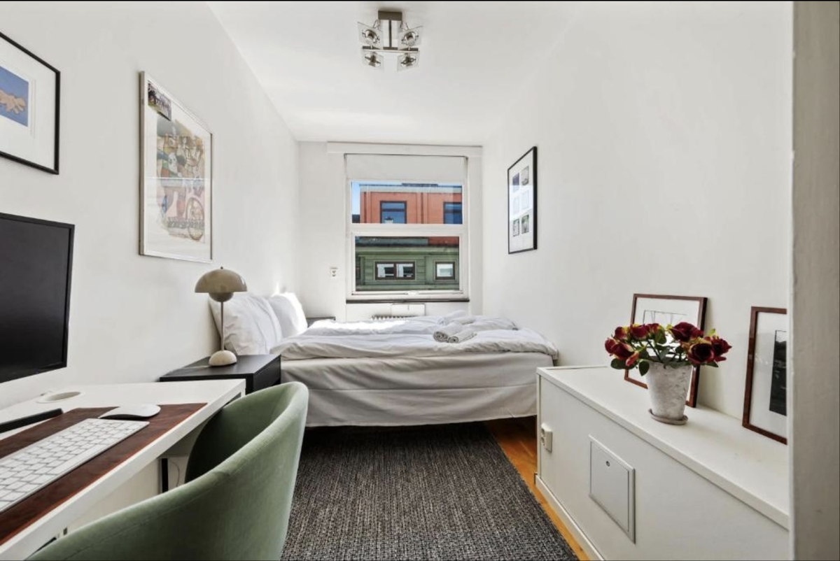 Jeg leier ut rommet mitt i en stor og flott leilighet med svært sentral beliggenhet. Leiligheten er fullt møblert og har alt du trenger for et komfortabelt opphold. Rommet er lyst, pent og har god plass til både seng, skrivebord og oppbevaring.