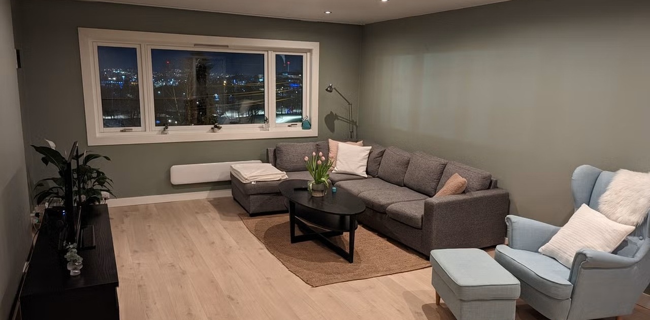 Vi leier ut et lyst og trivelig rom i en moderne leilighet over to plan. Her vil du bo sammen med en jente og en gutt i 20-årene som setter pris på et ryddig, hyggelig og stabilt hjemmemiljø.