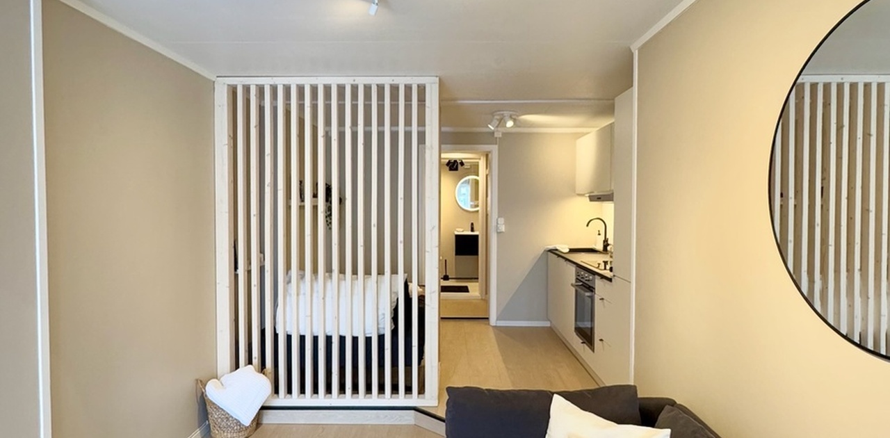Gjøvik: Nyoppusset, møblert 1-roms med sovealkove – kort avstand til alt!