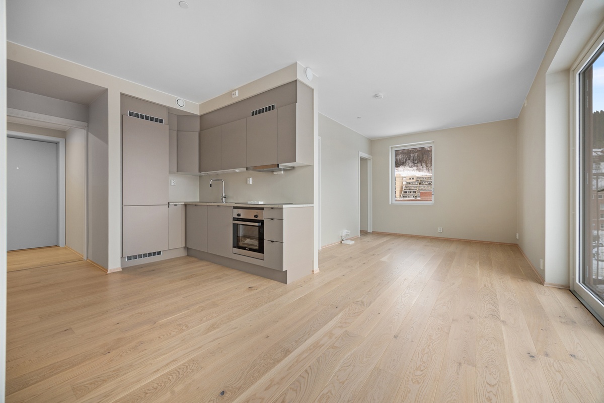En stilren 3-roms i attraktivt prosjekt. Leiligheten har en god endebeliggenhet og smart utforming hvor det er lagt vekt på romslige oppholdsrom og godt med naturlig lysinnslipp. I tillegg en romslig balkong på 9m² som blir en fin forlengelse av stuen. Denne er vendt mot sør som gir fine solforhold! Leiligheten har en pen standard med blant annet 1-stavs eikeparkett, kjøkken fra HTH med integrerte hvitevarer fra Siemens, vånnbåren gulvvarme, balanser ventilasjon og mye mer!