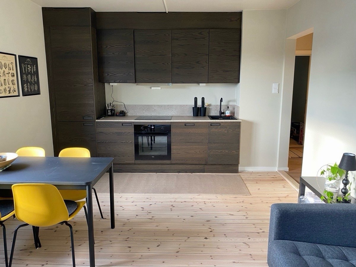Leiligheten er nyoppusset, fullt møblert og en fin liten hage. Det er også en bra kjellerbod til oppbevaring som dere deler på.