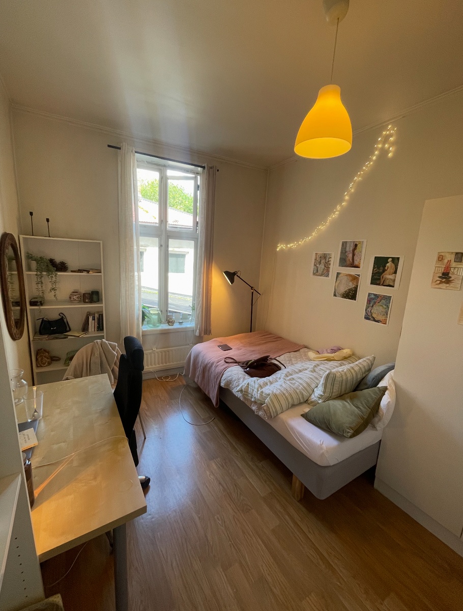 Sentralt kollektiv med stor felles stue og kjøkken. Soverommene og fellesarealene er møblerte.