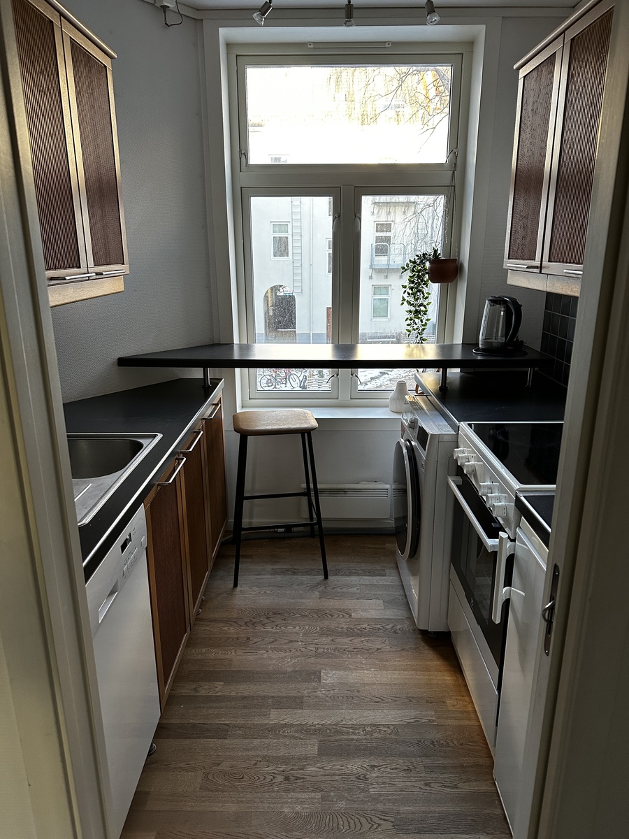 Hybelleiligheten holder en god standard. To store vinduer. Egen kjellerbod. Den inneholder adskilt kjøkken i tillegg til en gang, bad og stue/soverom.
