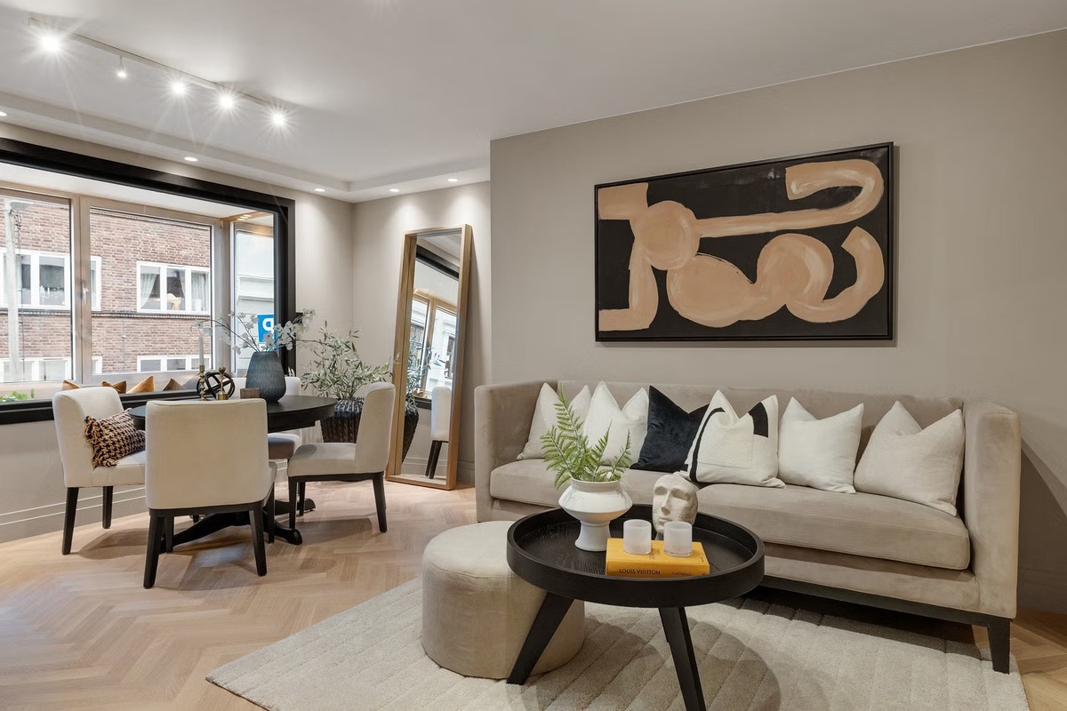 Merk: Bildene i annonsen er fra salgsoppgaven. Møbleringen avviker noe i dag, men stilen og tonen er beholdt.