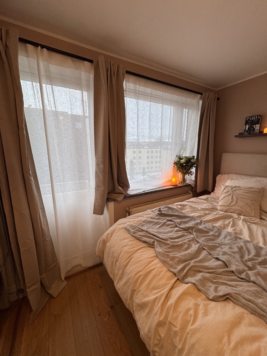 Leiligheten er lys, romslig og fullt møblert, med felles stue, kjøkken og bad. Rommet som leies ut er møblert og har god oppbevaringsplass. Her trenger du bare klærne dine og kan flytte rett inn. Du får tilogmed egen balkong!