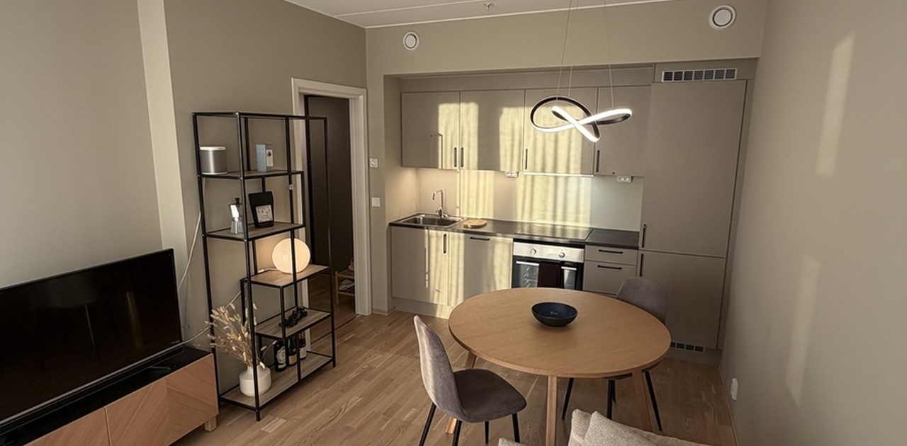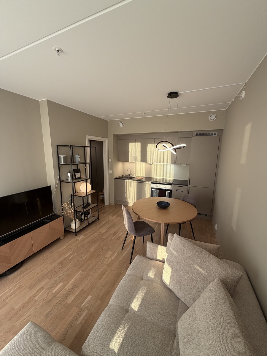 Leiligheten vil være møblert slik at det er bare å flytte rett inn. Det er bare vi som har bodd her siden den var ferdigbygd i slutten av 2024. Det følger med garasjeplass i parkeringskjeller.