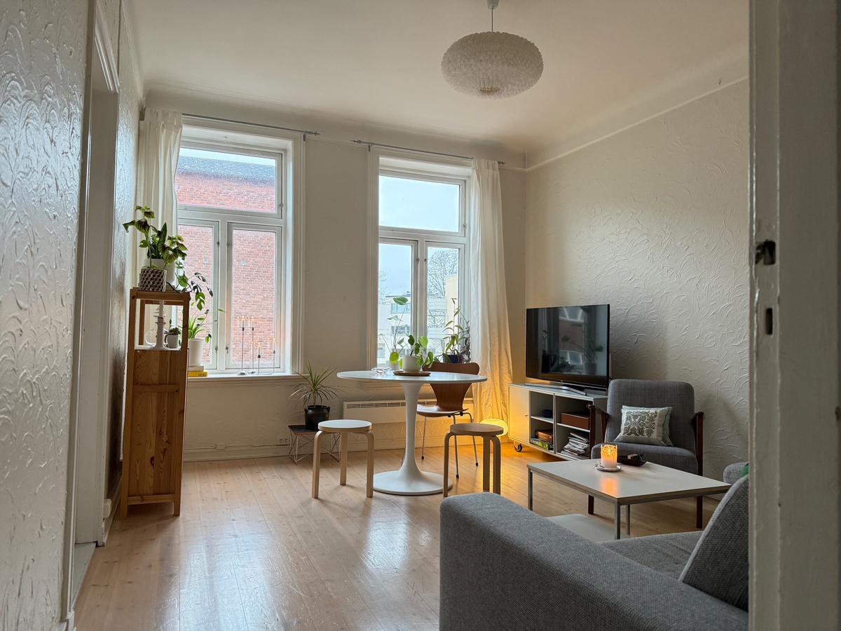 Dette er ikke en vorse-leilighet, men helt fint å ha venner/kjæreste på besøk.