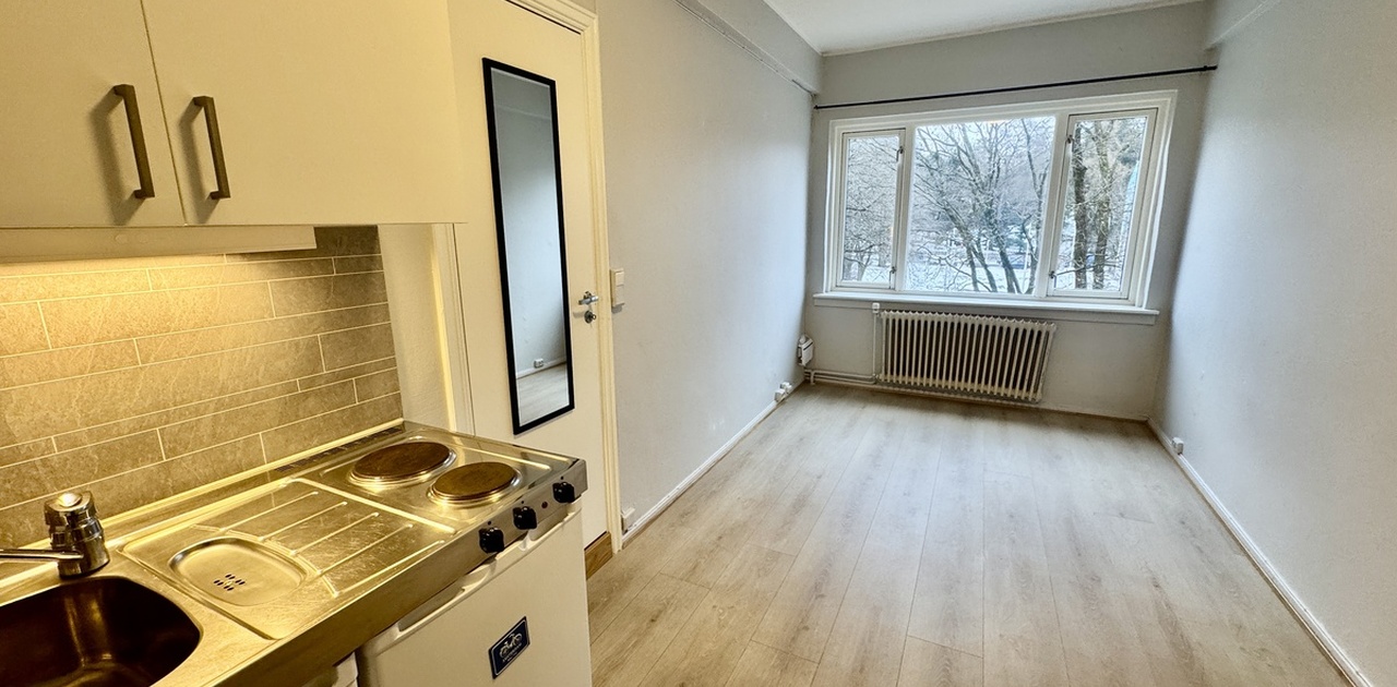 Vi har ledig en liten 1 roms leilighet i 4 etg. Leilighet er ny malt og har fått ny gulv.