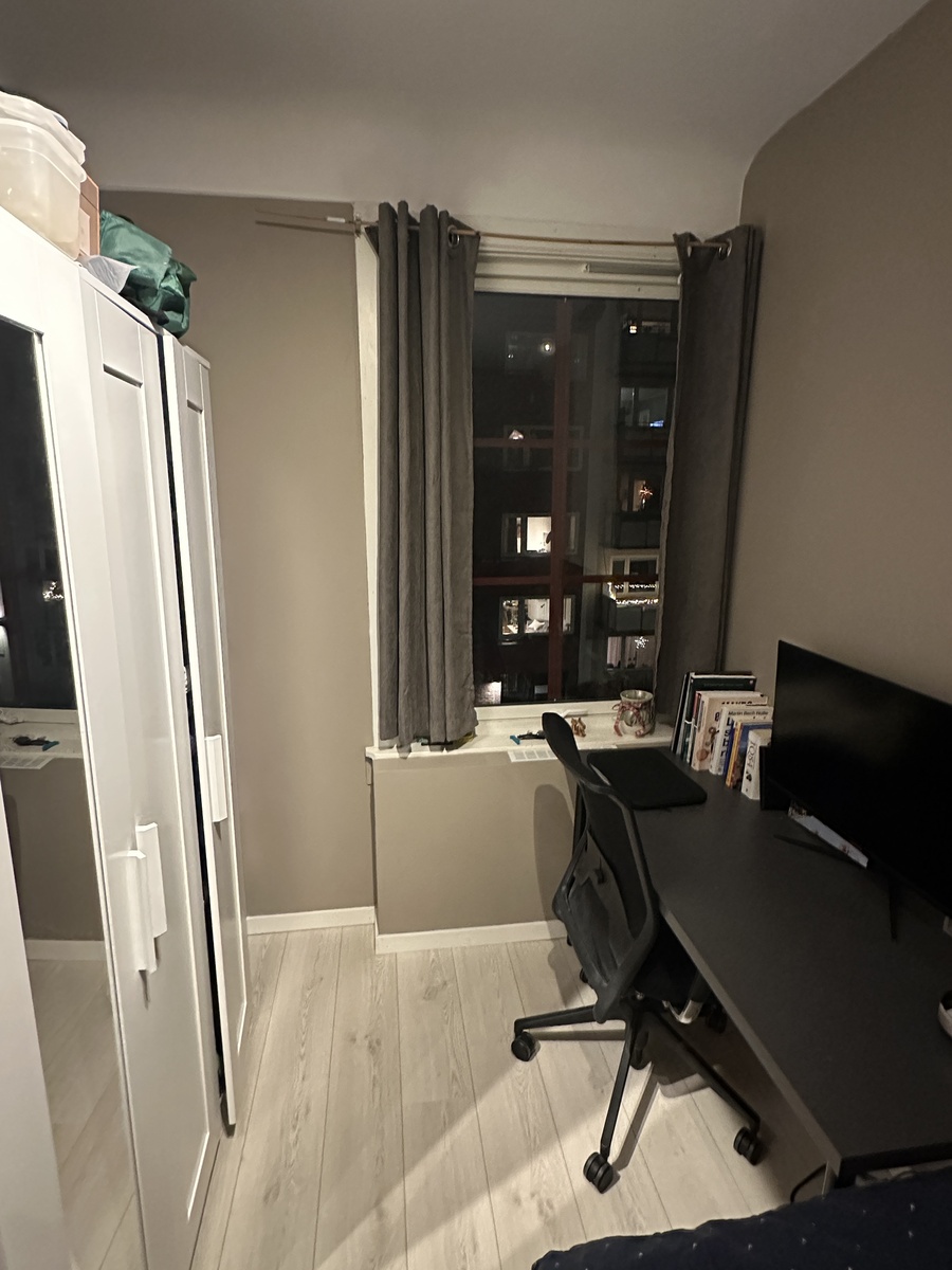 Leiligheten deles med 5 andre og har en åpen stue- og kjøkkenløsning, samt 3 bad. God plass og praktisk løsning for kollektiv.
