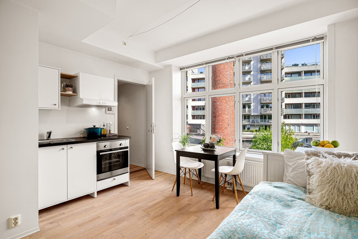 Lys og arealeffektiv hybel på 17 kvm til leie, sentralt på Kiellands plass. Hybelen har åpen stue-/soveromsløsning med gode møbleringsmuligheter og eget bad. Arealet er godt utnyttet og passer fint for én person.