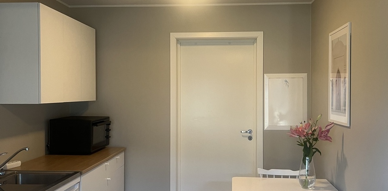 En praktisk og moderne studioleilighet svært sentralt plassert. Leiligheten er i 1.etasje av vår families rekkehus. Ser etter en rolig og stabil leietaker.