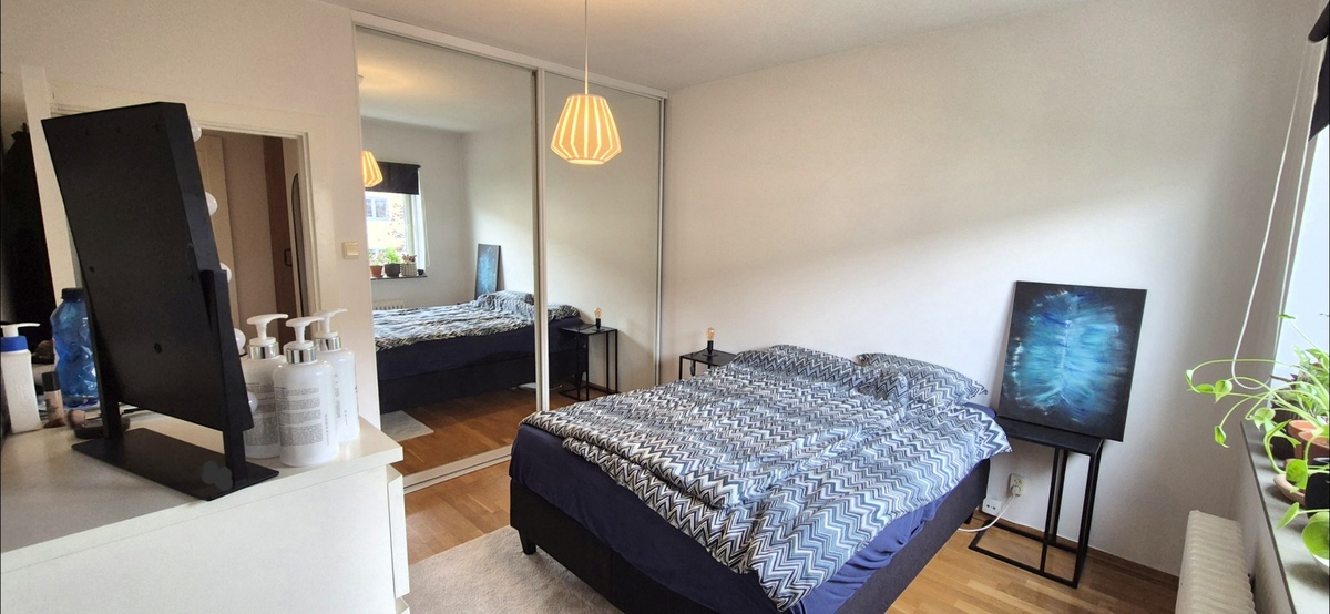 Rommet er ca 15 kvm, med vindu vendt mot en stille "bakgård". Rommet har en stor skyvedørsgarderobe med speildører, samt god høyde under taket, noe som gir en ekstra stor romfølelse. Radiatorene sørger for at vi aldri fryser i noen rom. Du får egen bod i underetasjen/kjeller.
