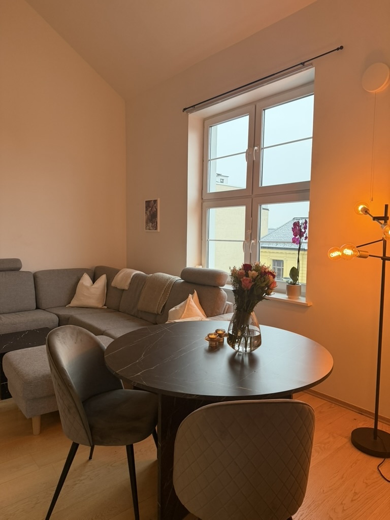 Leiligheten ligger midt i smørøyet, med kort vei til det meste byen har å tilby. En svært god takhøyde (4,75m) gir en romslig følelse. I tillegg til et soverom, stue, kjøkken og bad, byr leiligheten på en hems. Denne benyttes i dag både som et gjesterom og hjemmekontor.