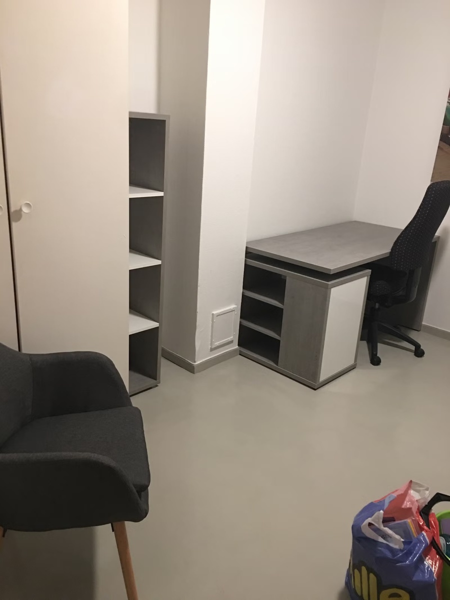 Rommet er fullt møblert med komfortabel seng, skrivebord, garderobeløsning og god lagringsplass. Perfekt for student eller pendler som ønsker en strukturert og behagelig bosituasjon.