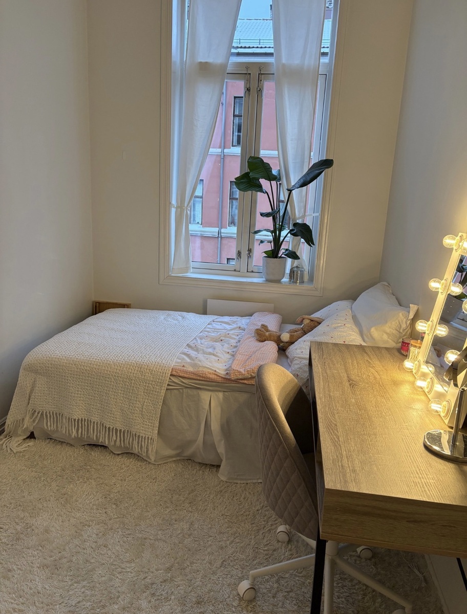 Jentene du vil bo med er rolige, ryddige og liker å ha ting på stell, så det er fint om du også setter pris på renslighet og respekt. Det er ingen stue i kollektivet, men gangen og soverommene fungerer godt som hengeområder.