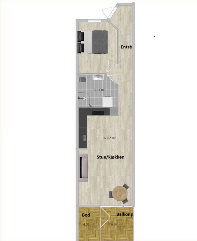 Leiligheten leies ut med hvitevarer ( halvmøblert/eller møblert om ønskelig).