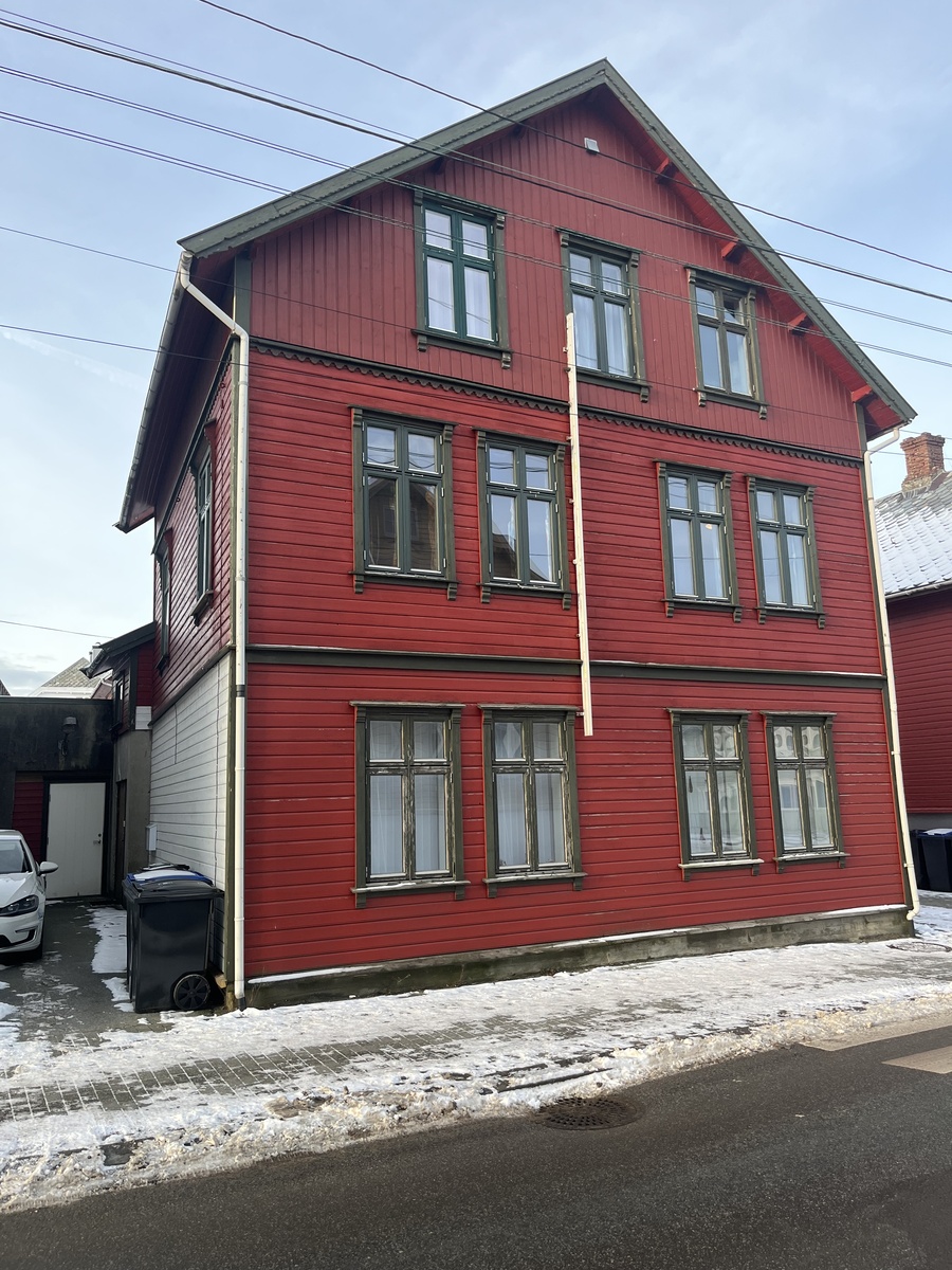 69kvm stor leilighet i 2. etasje. Leiligheten ligger i et hus med 2 andre leiligheter, en under og en over.
