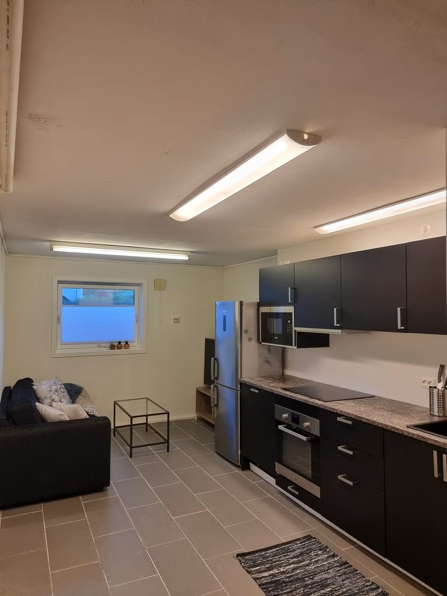 Delvis møblert kjeller/sokkel leilighet med utvendig oppstillingsplass for sykkel og bil ved behov.