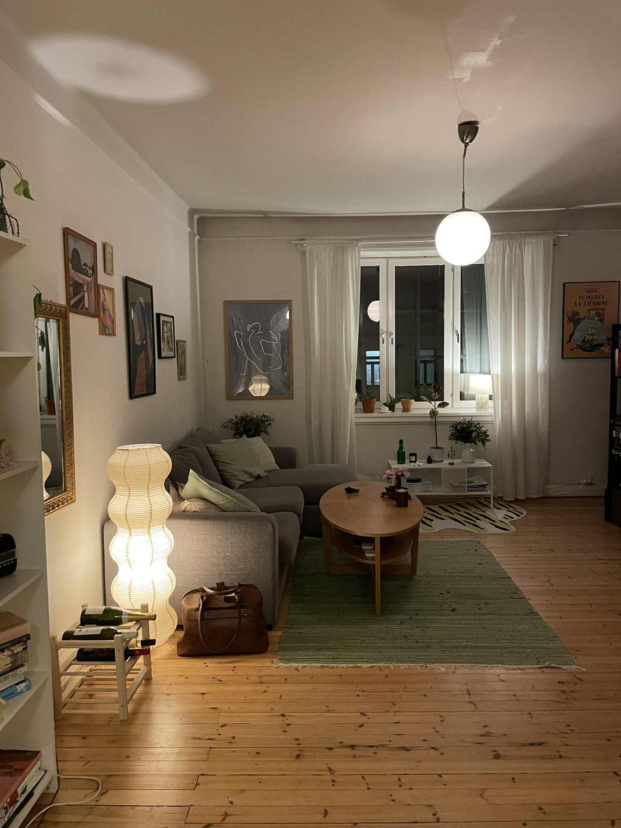 Vi betaler 7667kr hver i måneden og inkludert i denne prisen er det internett, varmtvann og oppvarming (vannbåren radiator, så vi bruker heldigvis 0kr i strøm på å varme opp leiligheten!). Strømmen vi betaler utenom dette varierer litt fra måned til måned, men ligger stort sett på totalt 500-700kr (også om vinteren), som vi deler mellom oss tre. Depositumet er på to måneders leie, 15 334 hver. Av hvitevarer medfølger kjøleskap med fryser, komfyr og oppvaskmaskin, i tillegg til at vi har en vaskemaskin på badet som har blitt satt igjen av tidligere leietakere. Leiligheten er skikkelig hjemmekoselig med tregulv, treverk på kjøkkenet og store fellesarealer! I tillegg er badet veldig moderne og fint med varmekabler i gulvet. Leiligheten ligger i et rolig sameie med lite bråk fra naboleiligheter, og vi har en romslig bod i kjelleren.