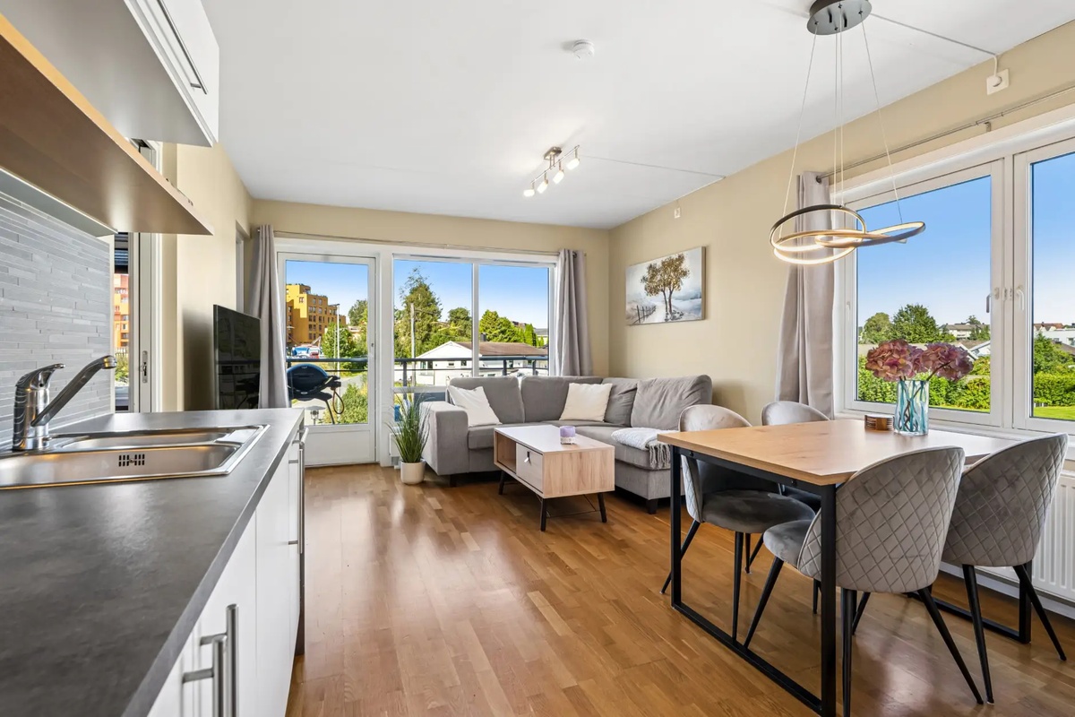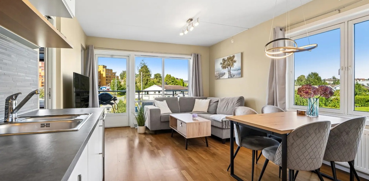 Soverommet ditt inkluderer taklampe og klesskap, ellers må det innredes slik du ønsker. Utover det er hele leiligheten møblert.