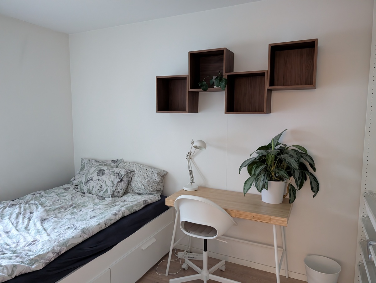 Jeg leier ut mitt soverom på ca. 9 kvm i leiligheten min på Sagene/Bjølsen fra 1. mars 2026. Rommet er møblert med en 140 seng, skrivebord, hyller og en meget romslig PAX-garderobe. Innflytting kan tilpasses, og første månedsleie kan beregnes utfra når du flytter inn. Månedsleie på 13 000 kr, inkluderer da faste kostnader (strøm, oppvarming, varmtvann og internett).