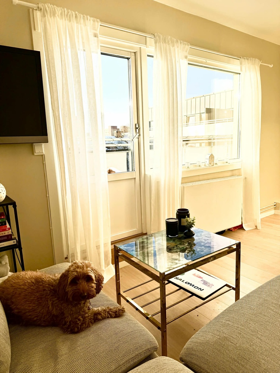 We’re on the hunt for a flatmate to join our top-floor pad in buzzing Tøyen – with our sweet cockapoo Olympia as part of the deal! 🐶❤️ She’s a gentle, allergy-friendly bundle of joy who is both mad for mountain hikes and sofa cuddles.