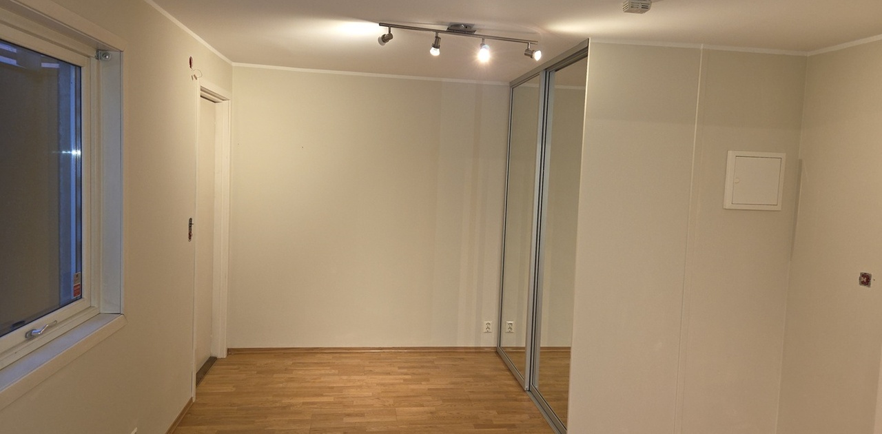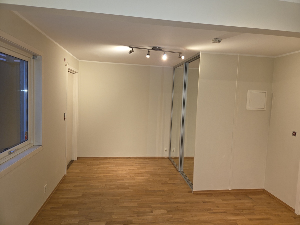 Liten hybel i underetasje leies ut. Med egen inngang. Ca 20kvm, men med romslig bad. Kjøkken per nå med kun koketopper. Opplegg for vaskemaskin på bad. Stor skyvedørsgarderobe. Umøblert, men kan delvis eller helt møbleres etter avtale med den med rette leieboer. Egner seg kun for en person, for liten for et par. Ingen røyking. Dyr kan diskuteres. Nymalt nå. Pris inkl oppvarming, ekskl øvrig strøm og Internett.