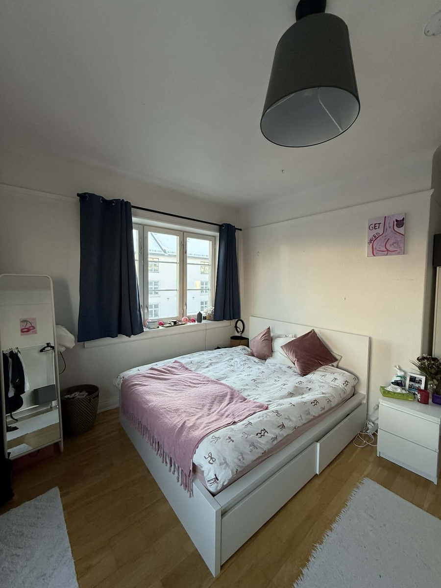 Rommene er store og luftige (ca. 20 m²). Leiligheten ligger i 4. etasje uten heis, med delt kjøkken, et stort bad og et lite toalett. Ingen stue, men kjøkkenet blir vårt naturlige samlingspunkt for kaffeprat ☕✨