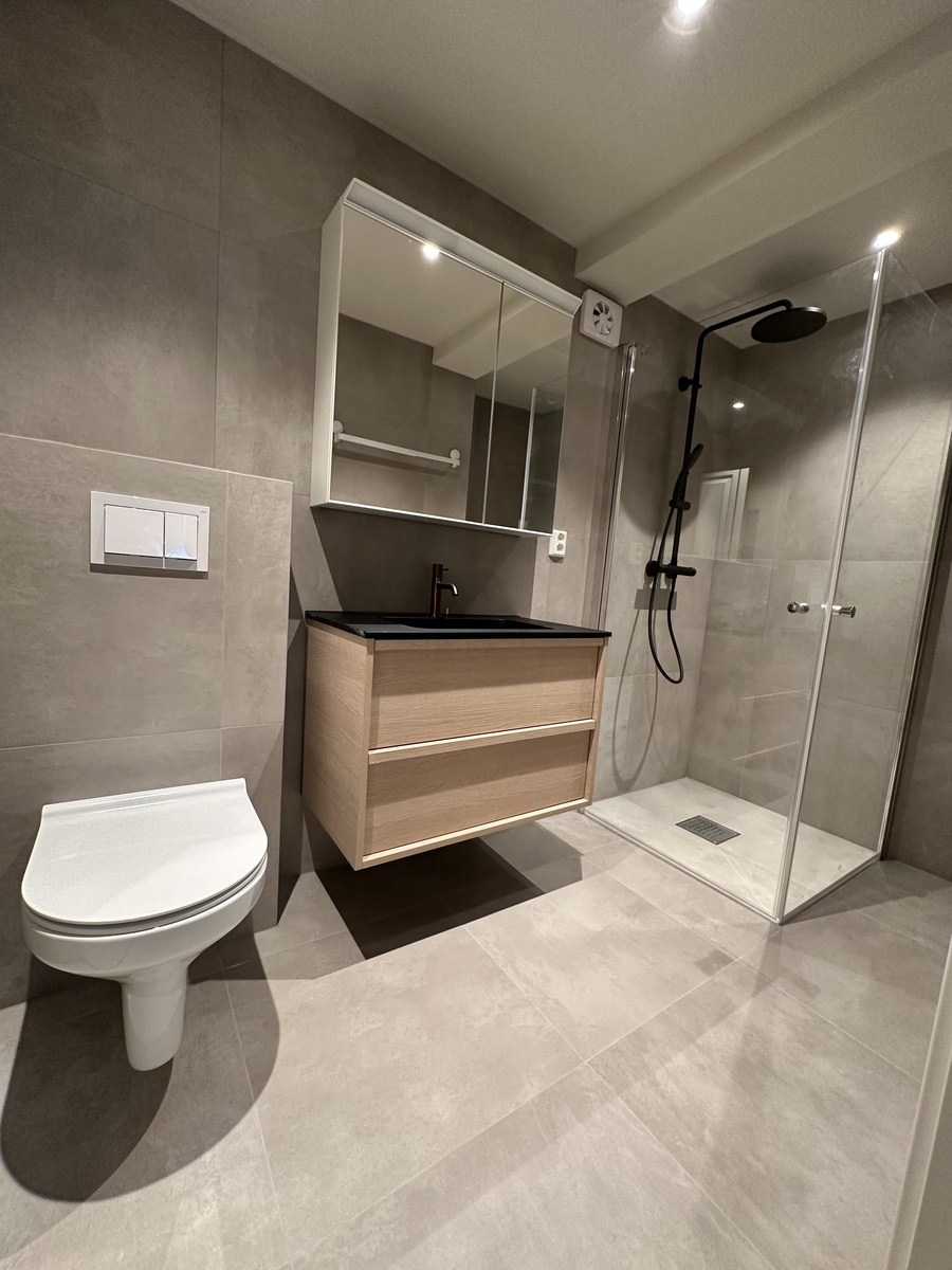 Kjøkkenet er et nytt Ikea-kjøkken med oppvaskmaskin, kombiskap, stekeovn og induksjonstopp. Badet er flislagt med varmekabler og med alle nødvendige fasiliteter. Siden det er en kjellerleilighet er det gjort en rekke tiltak for godt inneklima i leiligheten ved å sikre riktig fuktighet og god luftkvalitet.