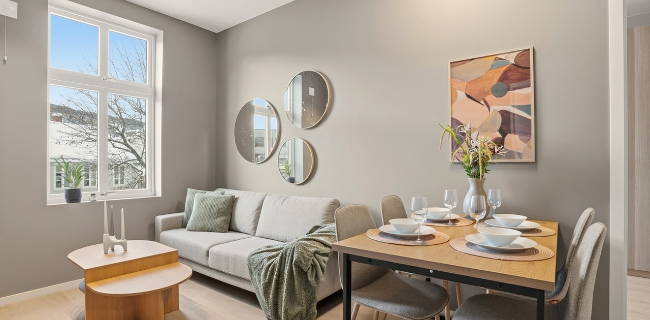 Leiligheten er fullt møblert, så her kan du ta med klærne og flytte rett inn.