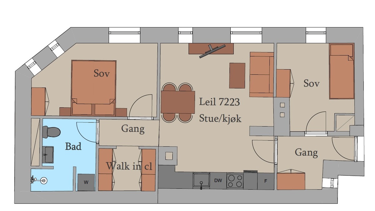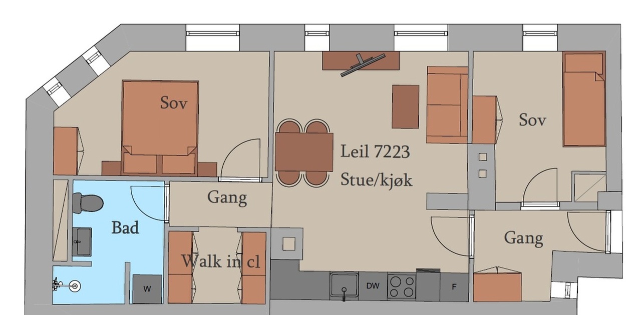 3-roms leilighet beliggende på Frogner i en velholdt bygård bak slottet. Leiligheten består av kjøkken i åpent rom, bad. På kjøkkenet medfølger hvitevarer som kombi kjøleskap, oppvaskmaskin, vaskemaskin, komfyr og platetopp
