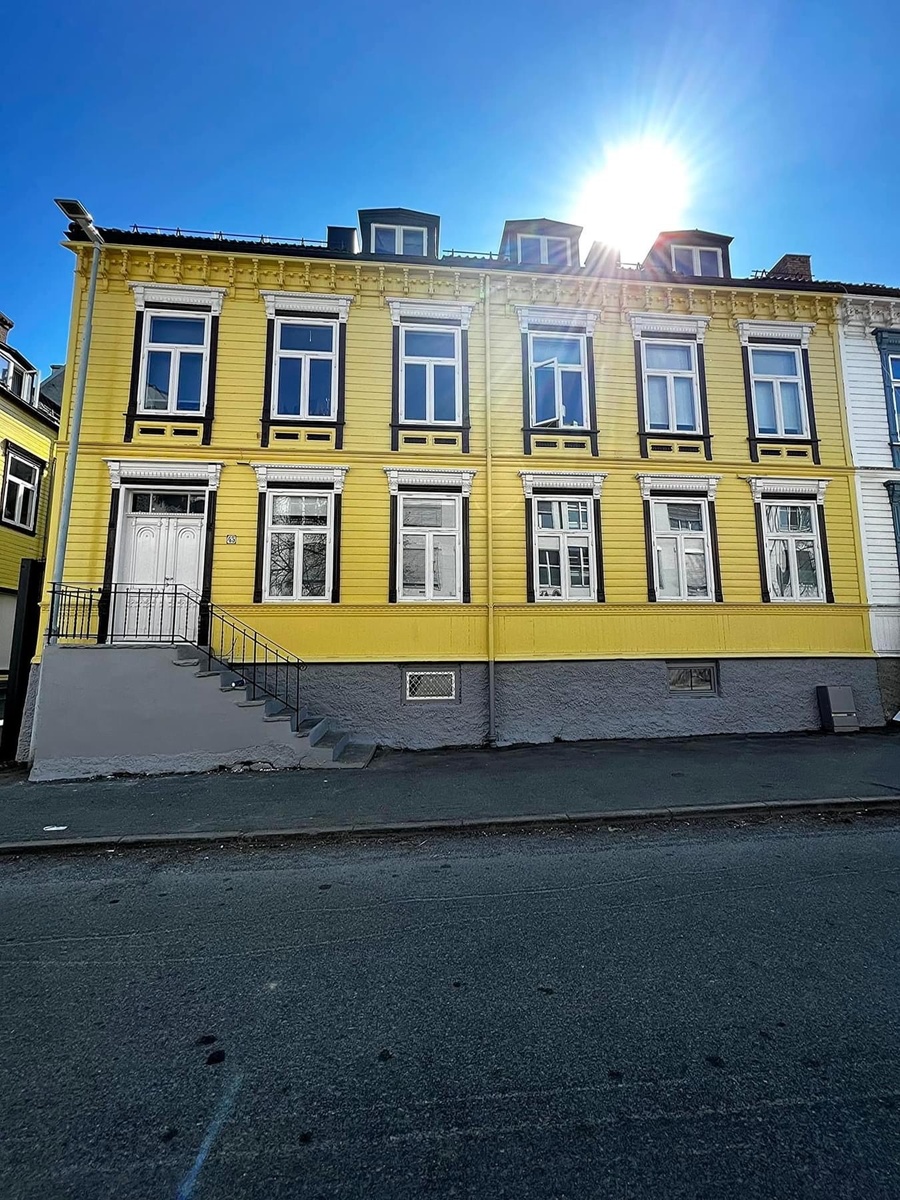 Lys og koselig hybelleilighet i Kirkegata 45, sentralt beliggende rett ved Solsiden. Leiligheten ligger i Norges lengste sammenhengende trehusbebyggelse fra 1800-tallet, og bygården har et meget hyggelig «gamleby»-preg – et hus med sjel og historie.