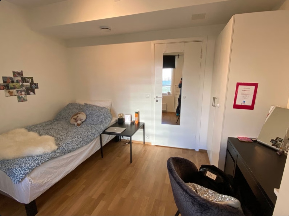 Leiligheten holder høy standard. Det er felles bad og kjøkken, og en koselig stue med sofa og TV. Direkte utgang til stor terrasse. Internett er inkludert i leien!